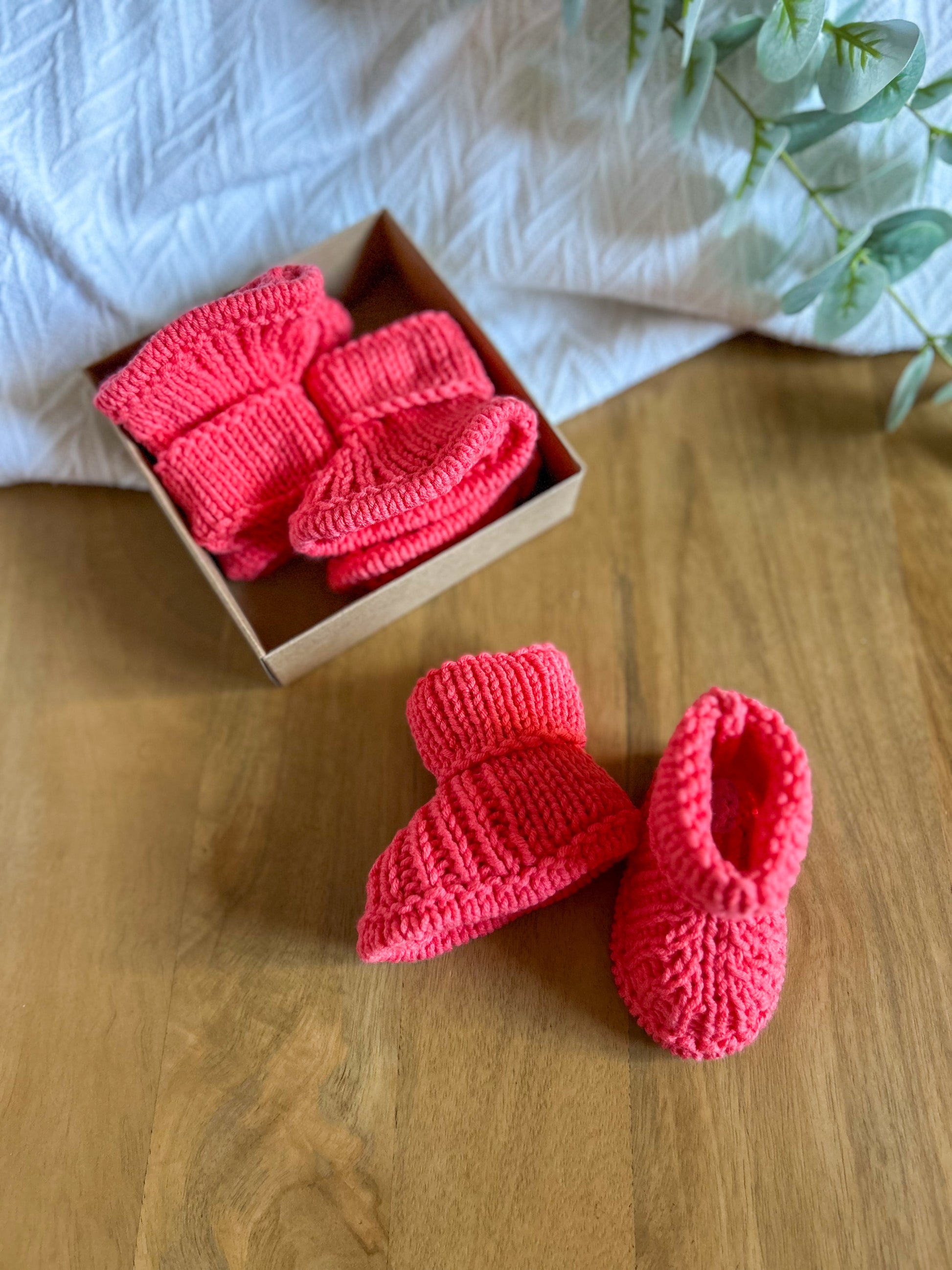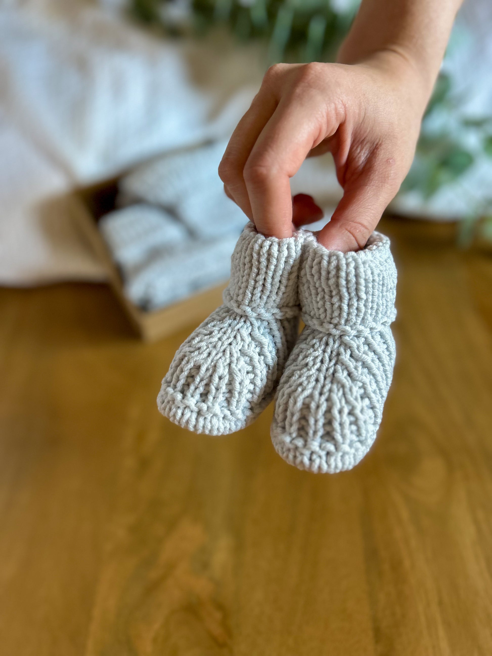 Ces adorables chaussons tricotés en coton sont une véritable explosion de tendresse et de joie ! Leurs couleurs éclatantes célèbrent l’arrivée de votre tout-petit avec une touche de peps, tandis que leur grosse maille cosy offre un confort absolu. Conçus pour être faciles à enfiler, ils s’adaptent parfaitement aux petits pieds, même par-dessus un pyjama. Un indispensable pour garder bébé bien au chaud tout en ajoutant une note de douceur à ses premiers instants.