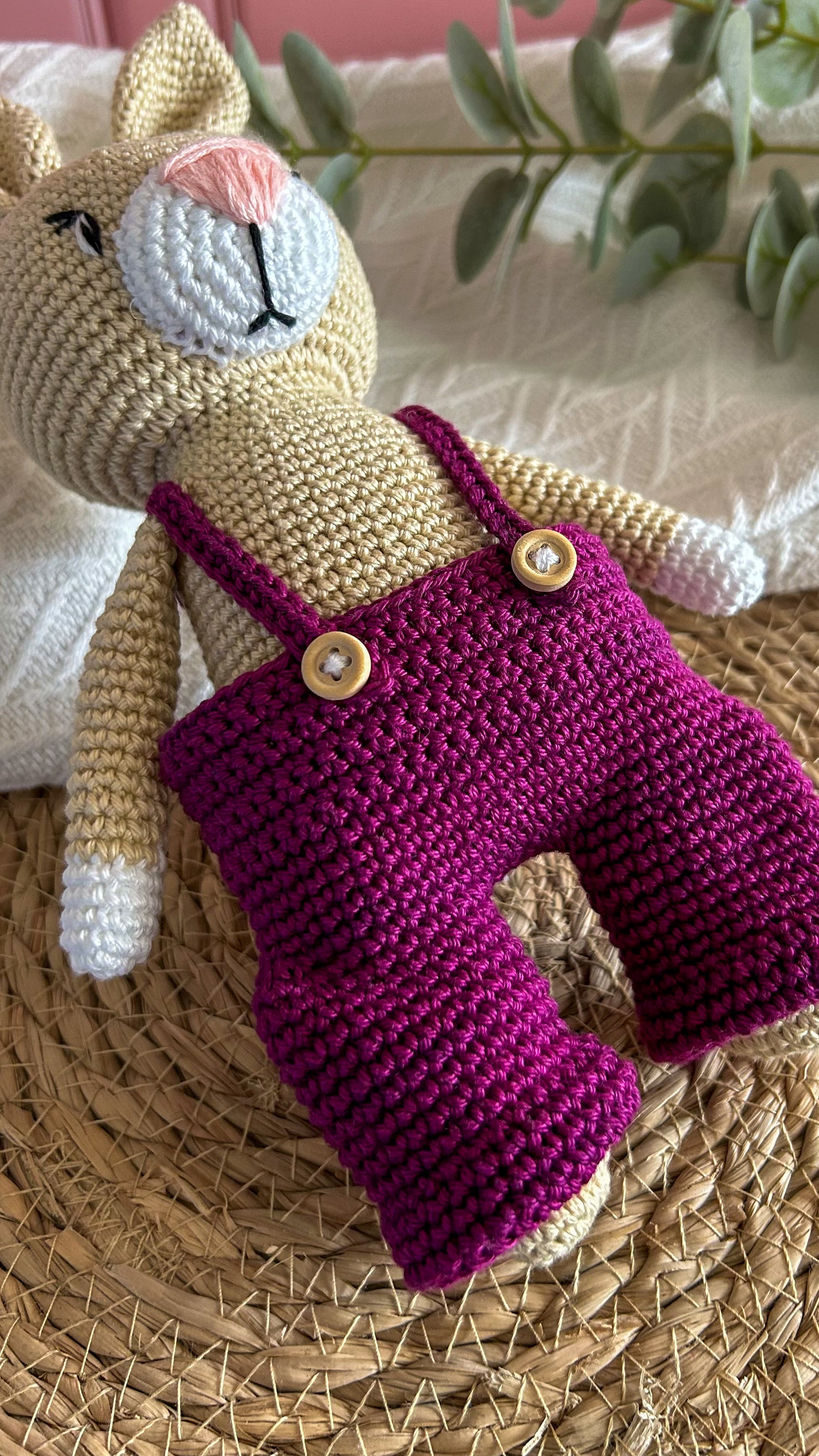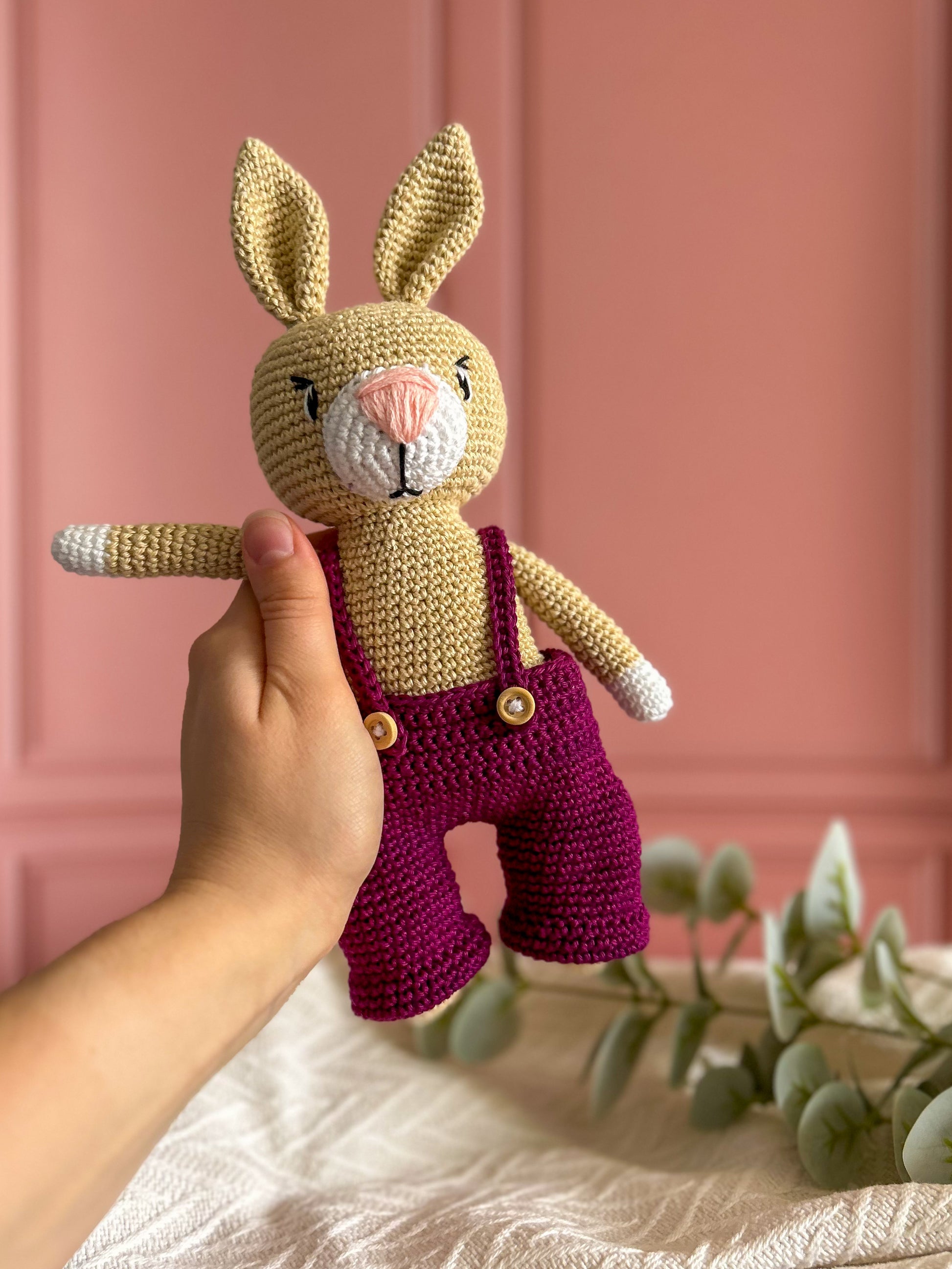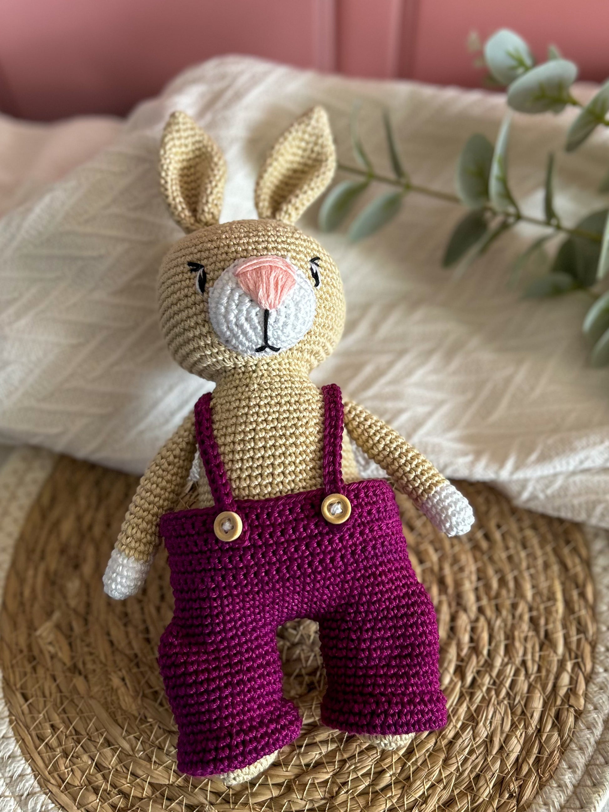 Craquez pour ce charmant lapin au crochet, vêtu de sa jolie salopette !