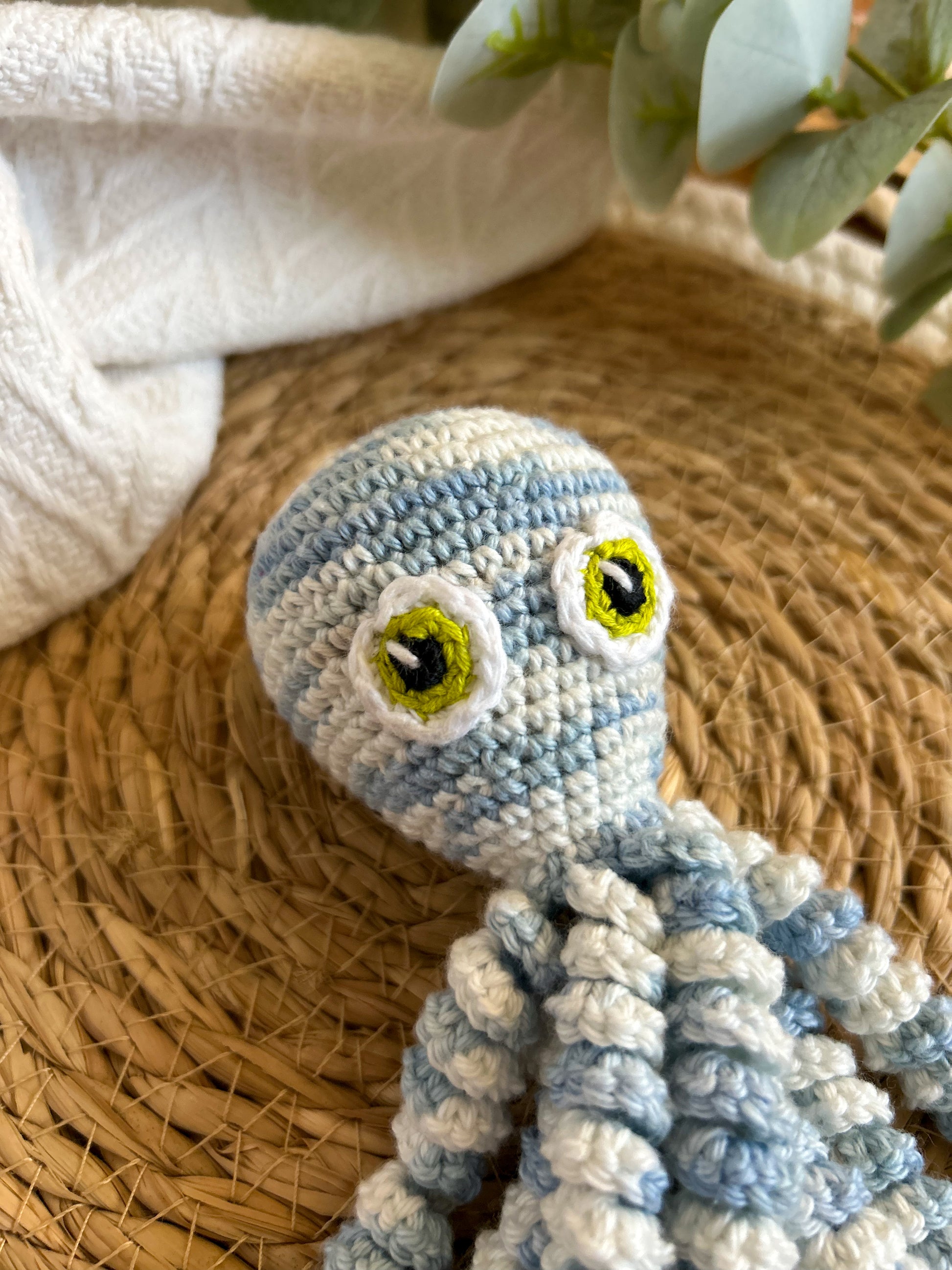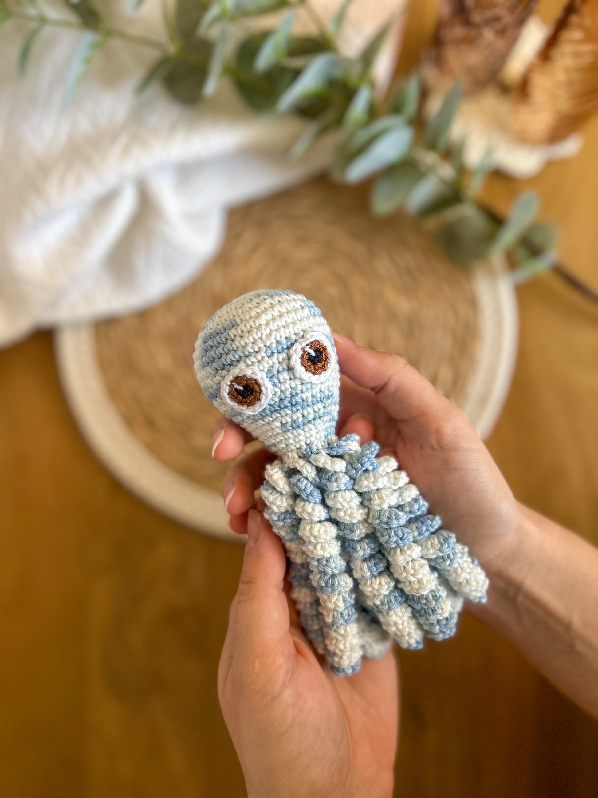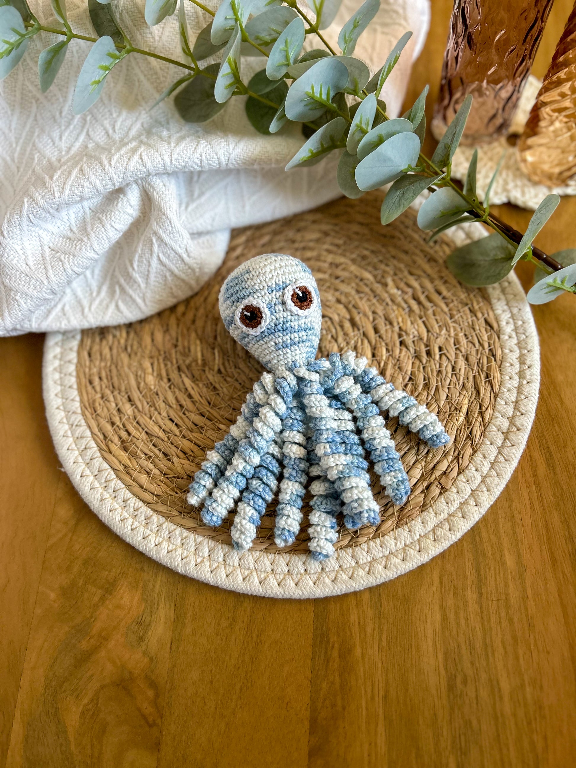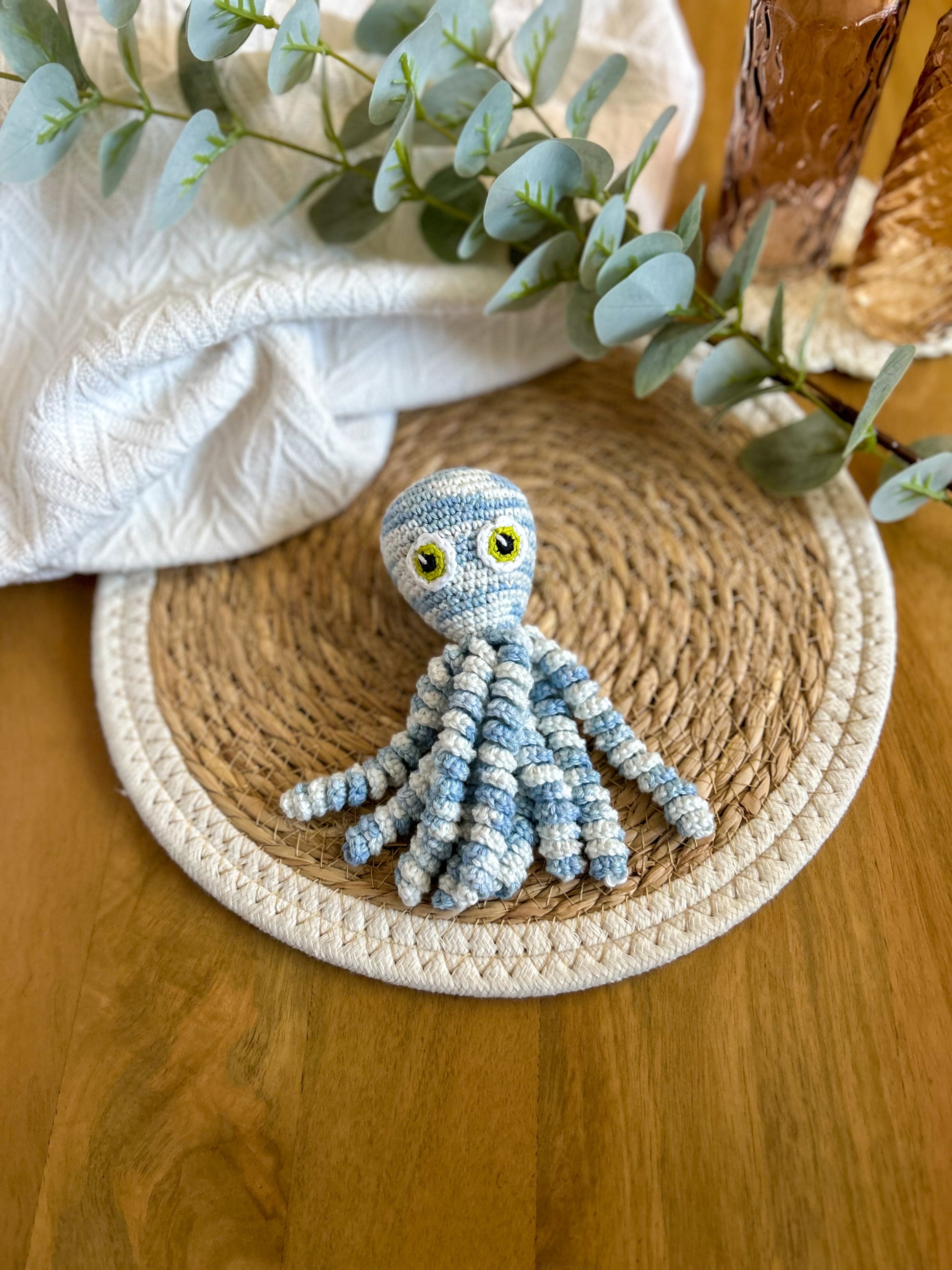 Toute la magie de la pieuvre réside dans ses tentacules torsadés qui rappellent le cordon ombilicale et dans sa taille adaptée aux enfants dès la naissance.