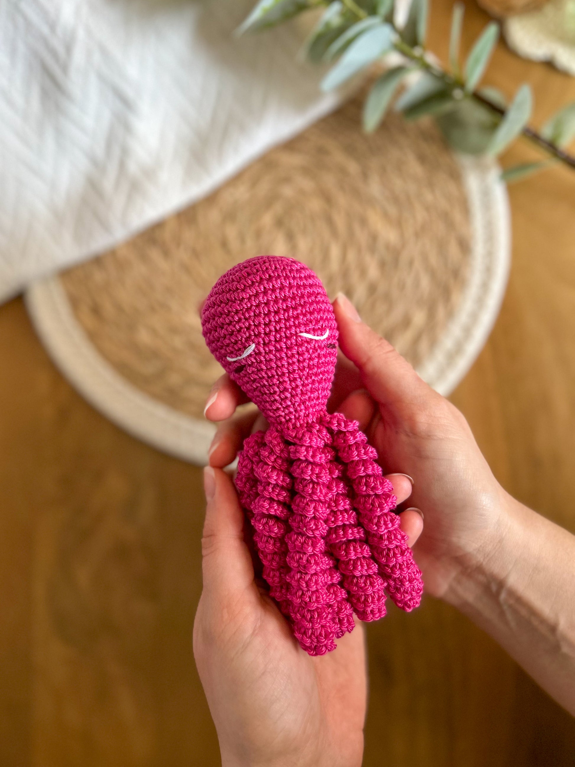 Toute la magie de la pieuvre réside dans ses tentacules torsadés qui rappellent le cordon ombilicale et dans sa taille adaptée aux enfants dès la naissance.